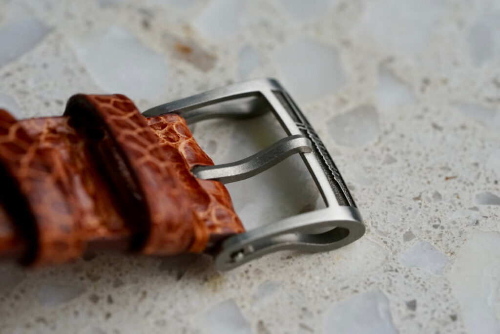 The strap is another talking point—made of rooster leather, something I hadn’t experienced before. The texture and grain are unique, and the warm brown tone pairs perfectly with the dial. I usually enjoy trying different strap combinations, but with this watch, nothing else feels quite right yet. One note: the use of curved spring bars means the strap hugs the case beautifully, but it also limits compatibility with aftermarket straps with straight ends (of which I have many and was hoping to pair some of them with this watch).