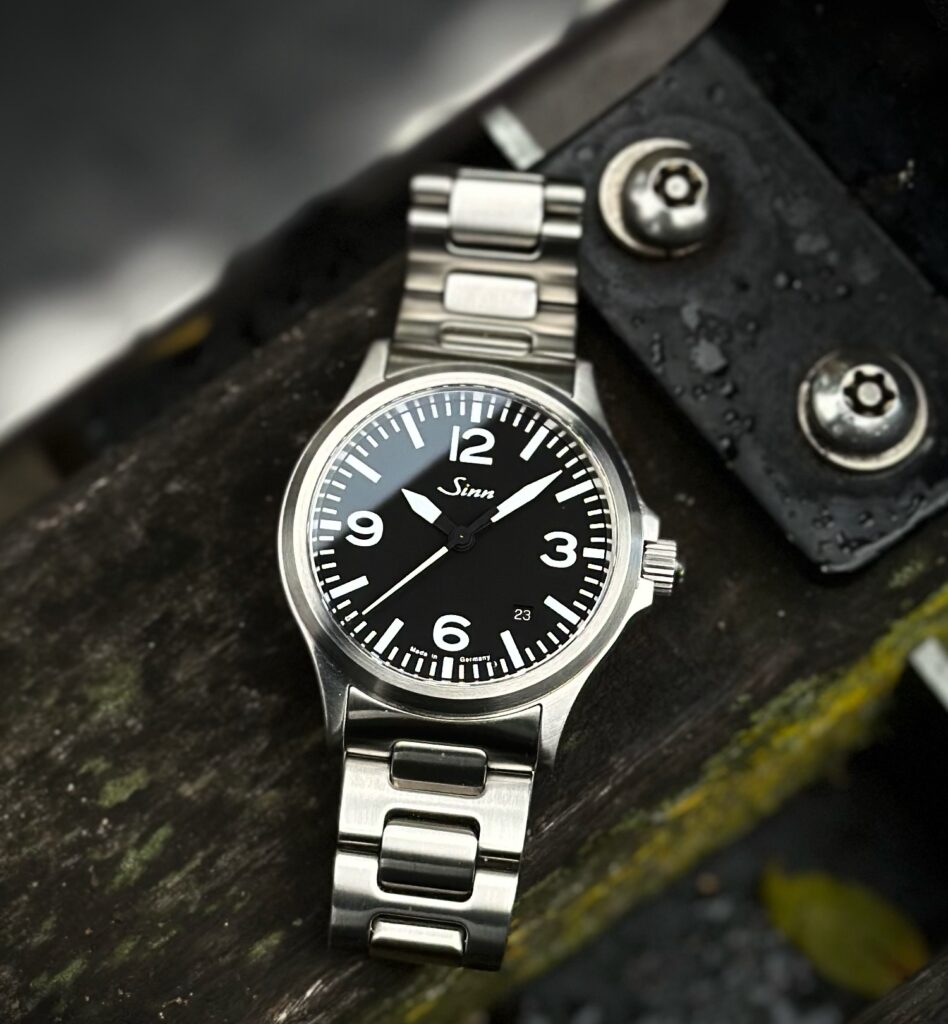 Now I suppose if you have been reading along so far, I should probably start to actually talk about the watch that I waited so long to buy. The Sinn 556 finds itself as the entry point into the brand. A fairly simple three-hand layout, powered by the ever-reliable Sellita SW200-1, helps to keep the cost a little more reasonable, and with its wrist-friendly 38.5mm diameter and 11mm of thickness, you can almost guarantee a comfortable wearing experience. The brand also pairs the 556 with its trademark H-link bracelet, which only complements the comfort further and is held together with hex bolts, a touch that Sinn will know their buyers appreciate. My model also comes equipped with the new on-the-fly adjustable clasp, an upgrade that Sinn lovers cried out for. It’s exceptionally well engineered but also heavy, perhaps better suited for their slightly beefier divers.